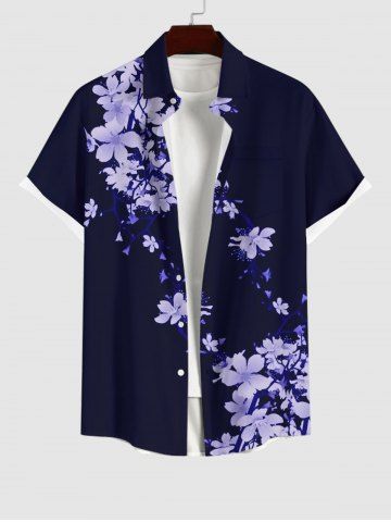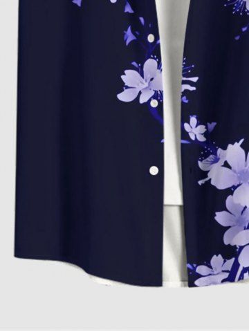 Plus Size Flowers Glitter 3D Print Buttons Pocket Hawaii Shirt For Men - Black - 4xl