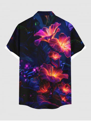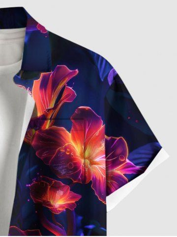 Plus Size Flowers Glitter 3D Print Buttons Pocket Hawaii Shirt For Men - Deep Blue - 6xl