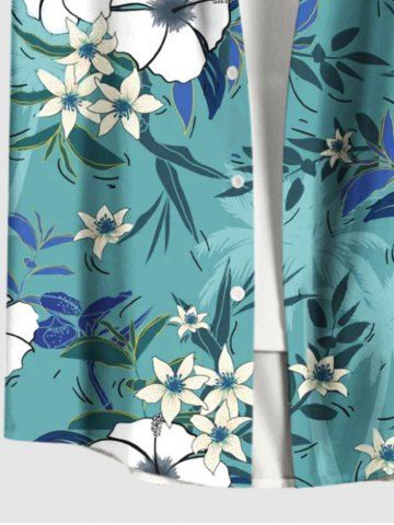 Plus Size Flowers Leaf Coconut Tree Print Buttons Pocket Hawaii Shirt For Men - Green - 4xl