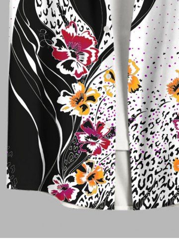 Plus Size Flowers Leaf Colorblock Leopard Print Buttons Pocket Hawaii Shirt For Men - Multi-a - M