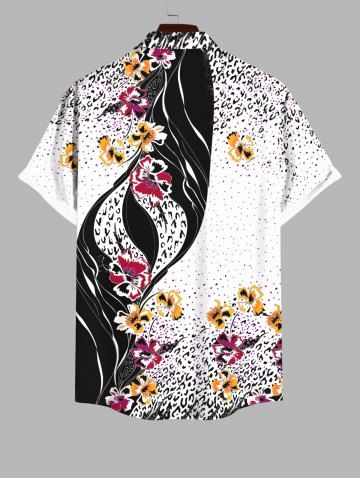 Plus Size Flowers Leaf Colorblock Leopard Print Buttons Pocket Hawaii Shirt For Men - Multi-a - 2xl