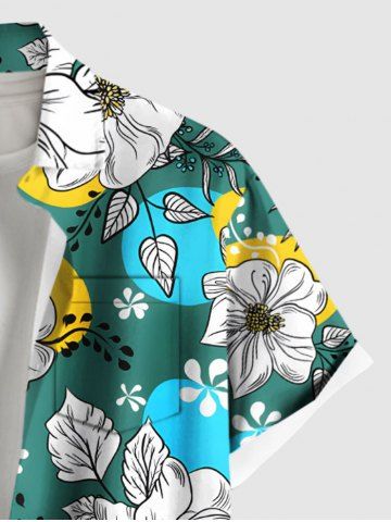 Plus Size Flowers Leaf Colorblock Print Buttons Pocket Hawaii Shirt For Men - Green - S