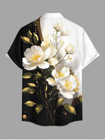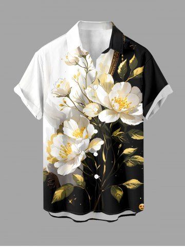 Plus Size Flowers Leaf Colorblock Print Buttons Pocket Hawaii Shirt For Men - White - 3xl