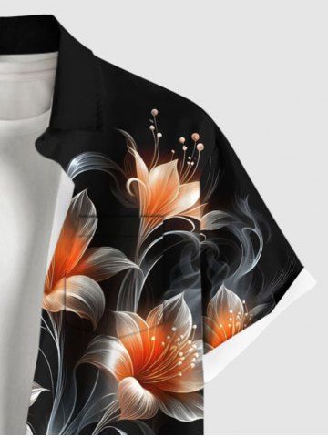 Plus Size Flowers Leaf Glitter 3D Print Buttons Pocket Hawaii Shirt For Men - Black - M
