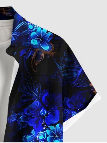Plus Size Flowers Leaf Glitter 3D Print Buttons Pocket Hawaii Shirt For Men - Black - 2xl