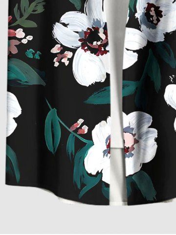 Plus Size Flowers Leaf Oil Painting Print Buttons Pocket Hawaii Shirt For Men - Black - 3xl