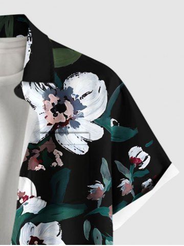 Plus Size Flowers Leaf Oil Painting Print Buttons Pocket Hawaii Shirt For Men - Black - 6xl