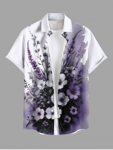 Plus Size Flowers Leaf Ombre Colorblock Print Buttons Pocket Hawaii Shirt For Men - Purple - 4xl