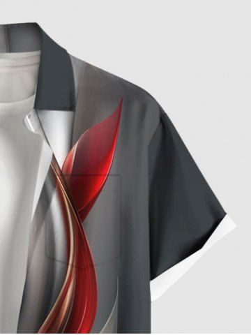 Plus Size Flowers Leaf Ombre Curve Print Buttons Pocket Hawaii Shirt For Men - Gray - Xl