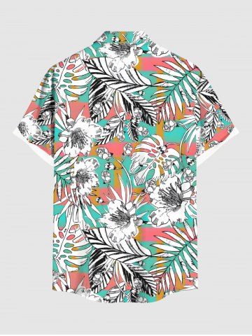 Plus Size Flowers Leaf Ombre Plaid Print Buttons Pocket Hawaii Shirt For Men - Green - M