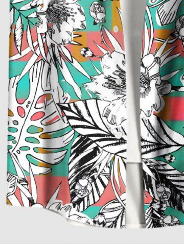 Plus Size Flowers Leaf Ombre Plaid Print Buttons Pocket Hawaii Shirt For Men - Green - 5xl