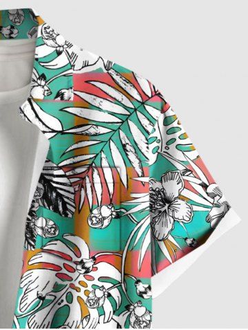 Plus Size Flowers Leaf Ombre Plaid Print Buttons Pocket Hawaii Shirt For Men - Green - 6xl