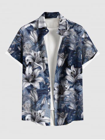 Plus Size Flowers Leaf Ombre Print Buttons Pocket Hawaii Shirt For Men - Blue - L