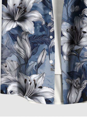 Plus Size Flowers Leaf Ombre Print Buttons Pocket Hawaii Shirt For Men - Blue - 3xl
