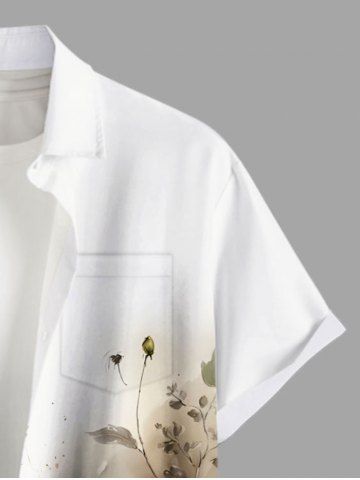 Plus Size Flowers Leaf Ombre Print Buttons Pocket Hawaii Shirt For Men - White - S