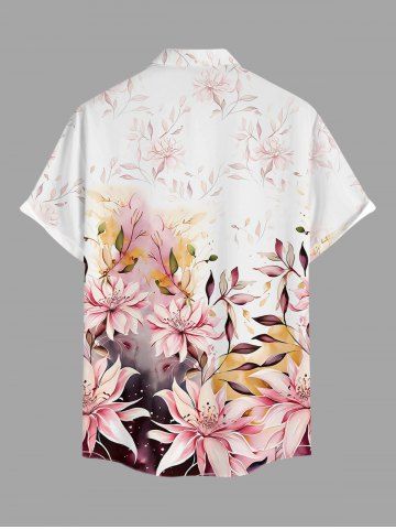 Plus Size Flowers Leaf Ombre Print Buttons Pocket Hawaii Shirt For Men - Pink - S