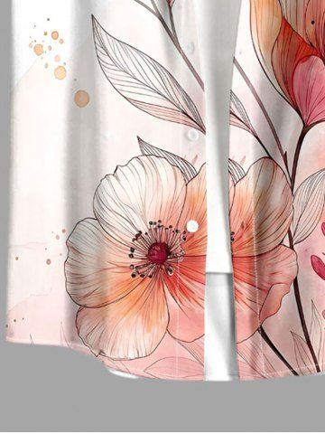 Plus Size Flowers Leaf Ombre Print Buttons Pocket Hawaii Shirt For Men - Pink - 5xl