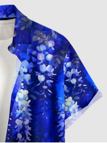 Plus Size Flowers Leaf Ombre Print Buttons Pocket Hawaii Shirt For Men - Blue - 5xl