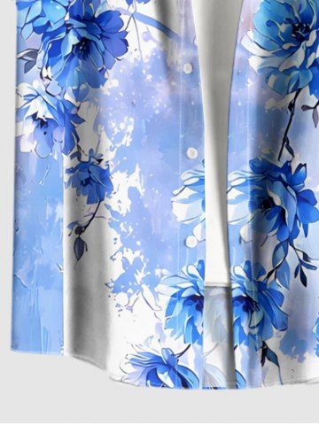 Plus Size Flowers Leaf Paint Splatter Print Buttons Pocket Hawaii Shirt For Men - Blue - 4xl