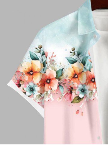 Plus Size Flowers Leaf Print Buttons Pocket Hawaii Shirt For Men - Multi-a - Xl