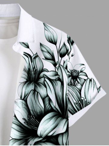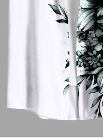 Plus Size Flowers Leaf Print Buttons Pocket Hawaii Shirt For Men - White - S