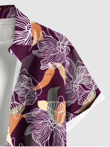 Plus Size Flowers Leaf Print Buttons Pocket Hawaii Shirt For Men - Purple - M