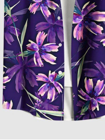 Plus Size Flowers Leaf Print Buttons Pocket Hawaii Shirt For Men - Purple - M