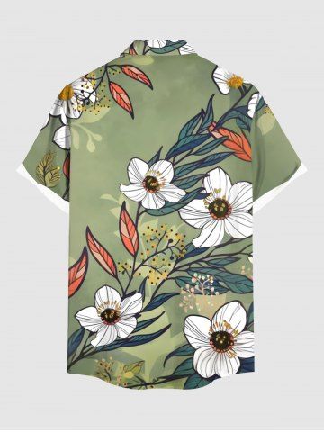 Plus Size Flowers Leaf Print Buttons Pocket Hawaii Shirt For Men - Green - L