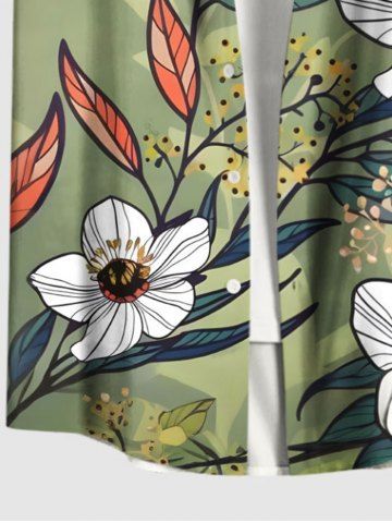 Plus Size Flowers Leaf Print Buttons Pocket Hawaii Shirt For Men - Green - 4xl