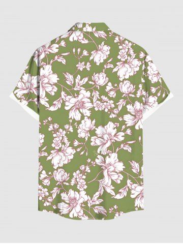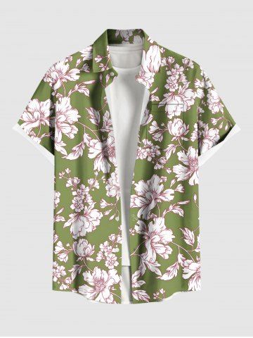 Plus Size Flowers Leaf Print Buttons Pocket Hawaii Shirt For Men - Green - Xl