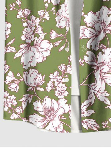 Plus Size Flowers Leaf Print Buttons Pocket Hawaii Shirt For Men - Green - 3xl