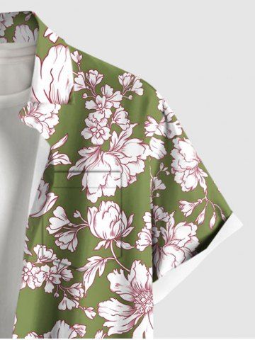 Plus Size Flowers Leaf Print Buttons Pocket Hawaii Shirt For Men - Green - 4xl