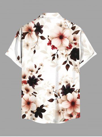 Plus Size Flowers Leaf Print Buttons Pocket Hawaii Shirt For Men - White - 5xl