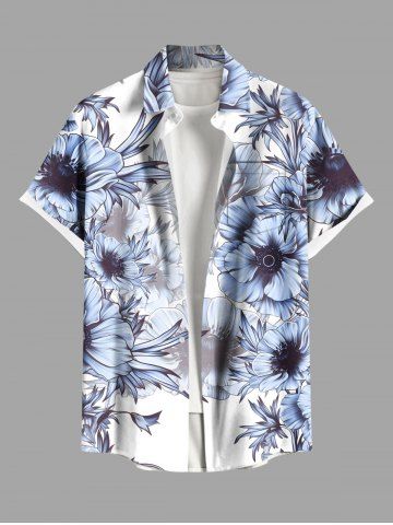 Plus Size Flowers Leaf Print Buttons Pocket Hawaii Shirt For Men - White - Xl
