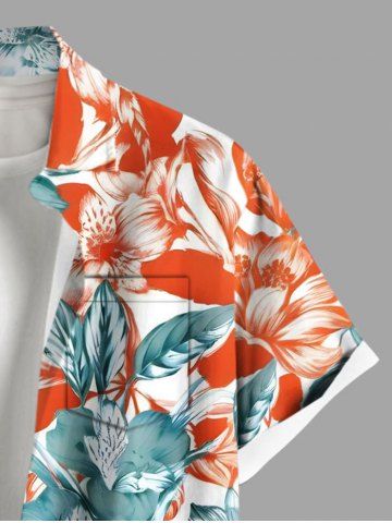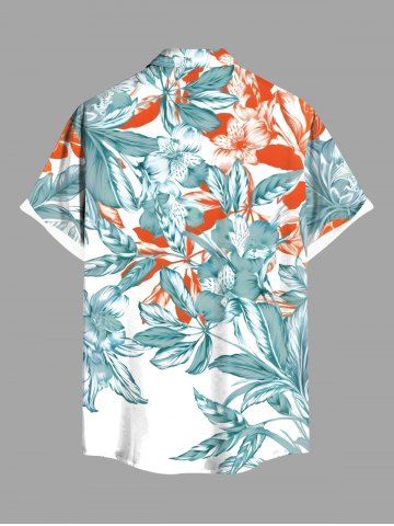 Plus Size Flowers Leaf Print Buttons Pocket Hawaii Shirt For Men - White - Xl