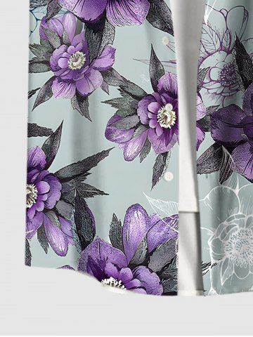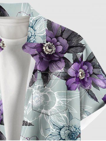 Plus Size Flowers Leaf Print Buttons Pocket Hawaii Shirt For Men - Purple - S