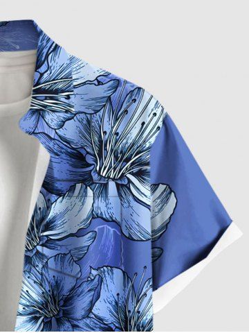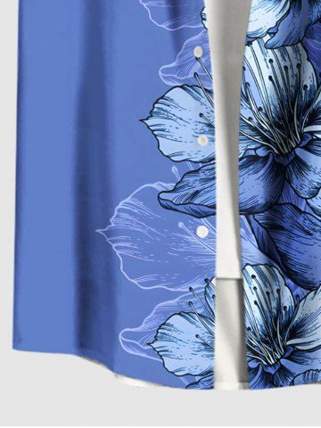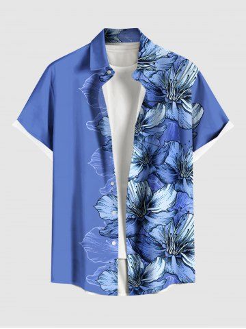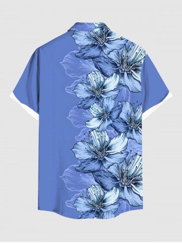 Plus Size Flowers Leaf Print Buttons Pocket Hawaii Shirt For Men - Sky Blue - 2xl
