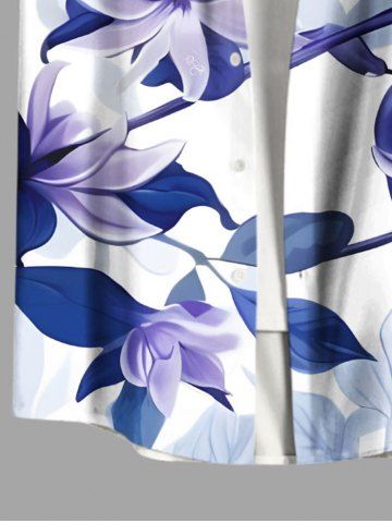Plus Size Flowers Leaf Print Buttons Pocket Hawaii Shirt For Men - White - 3xl