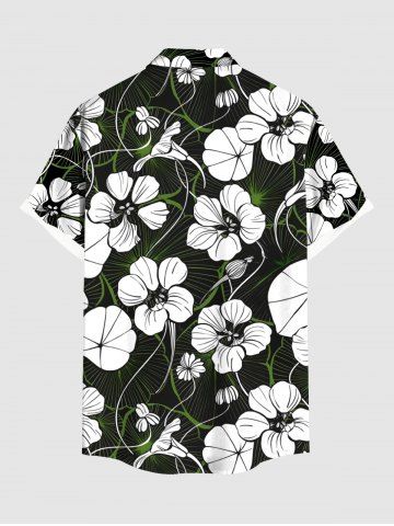 Plus Size Flowers Leaf Print Buttons Pocket Hawaii Shirt For Men - Black - L