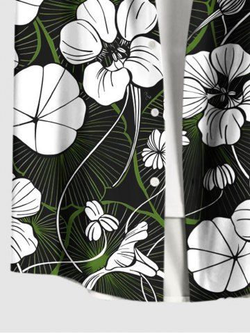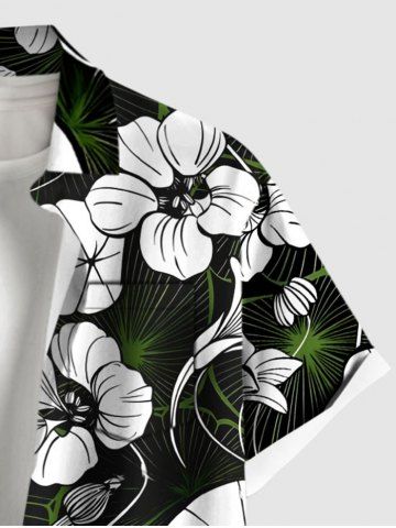Plus Size Flowers Leaf Print Buttons Pocket Hawaii Shirt For Men - Black - 6xl