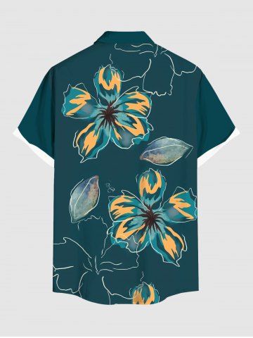 Plus Size Flowers Leaf Print Buttons Pocket Hawaii Shirt For Men - Green - 4xl