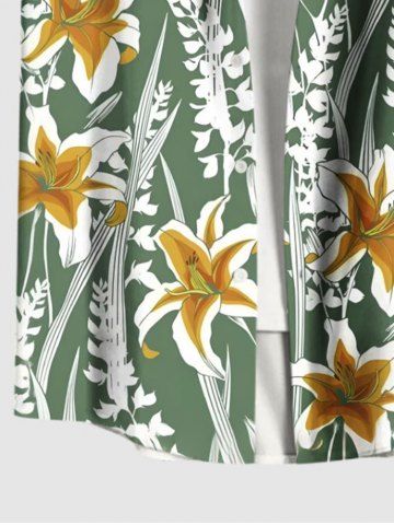 Plus Size Flowers Leaf Print Buttons Pocket Hawaii Shirt For Men - Green - 4xl