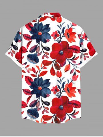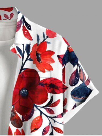 Plus Size Flowers Leaf Print Buttons Pocket Hawaii Shirt For Men - Red - S