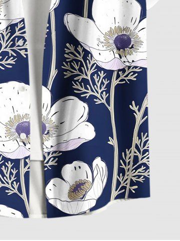 Plus Size Flowers Leaf Print Buttons Pocket Hawaii Shirt For Men - Navy Blue - 5xl