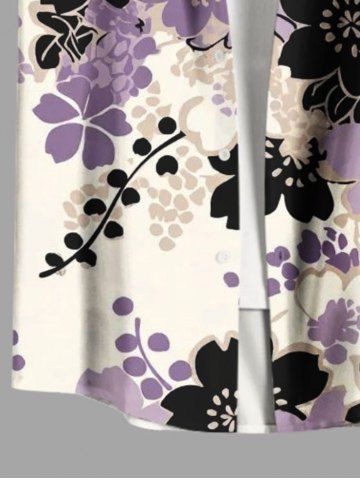 Plus Size Flowers Leaf Print Buttons Pocket Hawaii Shirt For Men - Apricot - S