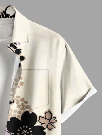 Plus Size Flowers Leaf Print Buttons Pocket Hawaii Shirt For Men - Apricot - Xl
