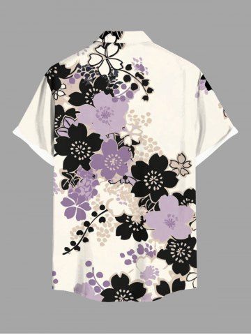 Plus Size Flowers Leaf Print Buttons Pocket Hawaii Shirt For Men - Apricot - 2xl