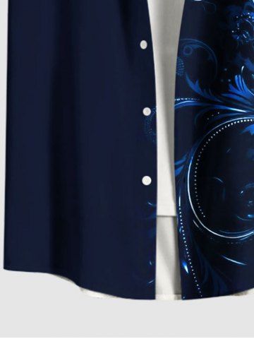 Plus Size Flowers Leaf Print Buttons Pocket Hawaii Shirt For Men - Deep Blue - M
