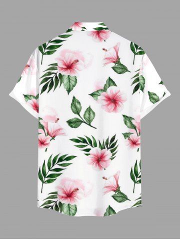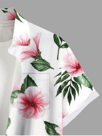 Plus Size Flowers Leaf Print Buttons Pocket Hawaii Shirt For Men - White - 3xl