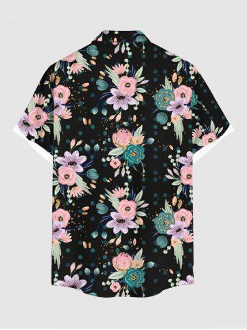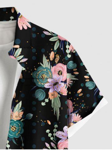 Plus Size Flowers Leaf Print Buttons Pocket Hawaii Shirt For Men - Black - S